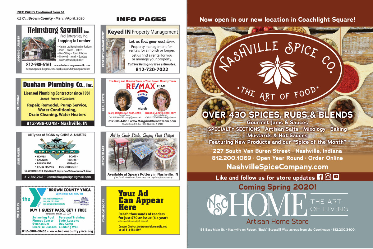 812-988-4485 • www. MargAndBrendaTeam. com 10 Artist Drive, P. O. Box 1609 • Nashville, IN 47448