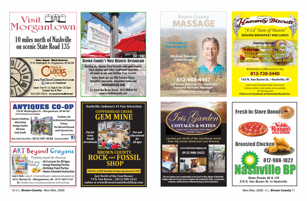 Just North of the Courthouse 79 N. Van Buren ~( 812) 988-2422 online at www. BrownCountyRockShop. com