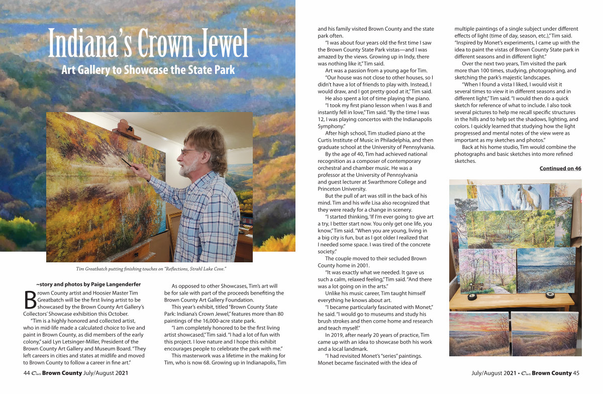This masterwork was a lifetime in the making for Tim, who is now 68. Growing up in Indianapolis, Tim and his family visited Brown County and the state park often.