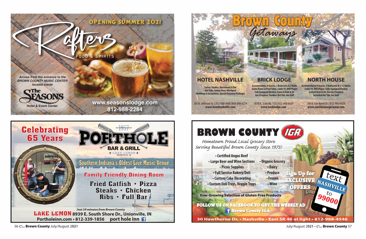 30 Hawthorne Dr. • Nashville • East SR 46 at light • 812-988-4546 July / August 2021 • Our Brown County 57