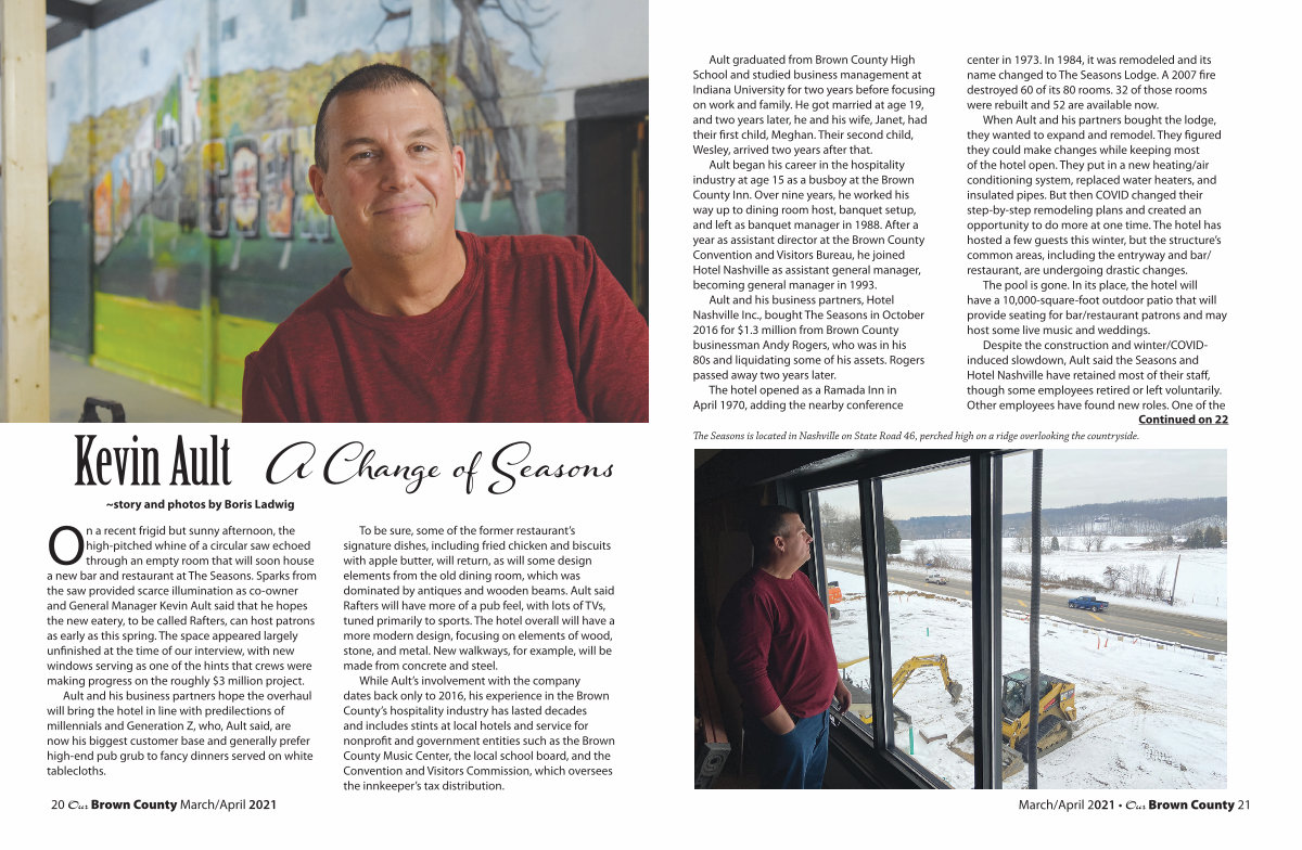 While Ault’s involvement with the company dates back only to 2016, his experience in the Brown County’s hospitality industry has lasted decades and includes stints at local hotels and service for nonprofit and government entities such as the Brown County Music Center, the local school board, and the Convention and Visitors Commission, which oversees the innkeeper’s tax distribution.