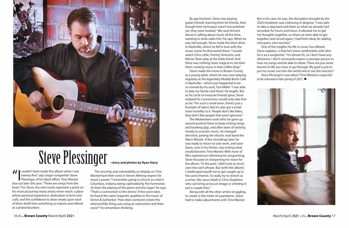 One of the insights his life in music has offered, Steve explains, is that he’ s more comfortable with who he is as a songwriter.“ I’ m almost 45, so I don’ t have any delusions. I don’ t necessarily expect a younger person to hear my songs and be able to relate. There are just some lessons in life you have to go through. My goal is just to put my music out into the world and to see the reaction.” Steve Plessinger’ s new album Time Wasted is expected to be released in late spring of 2021. •