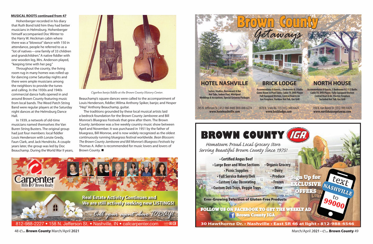 30 Hawthorne Dr. • Nashville • East SR 46 at light • 812-988-4546 March / April 2021 • Our Brown County 49