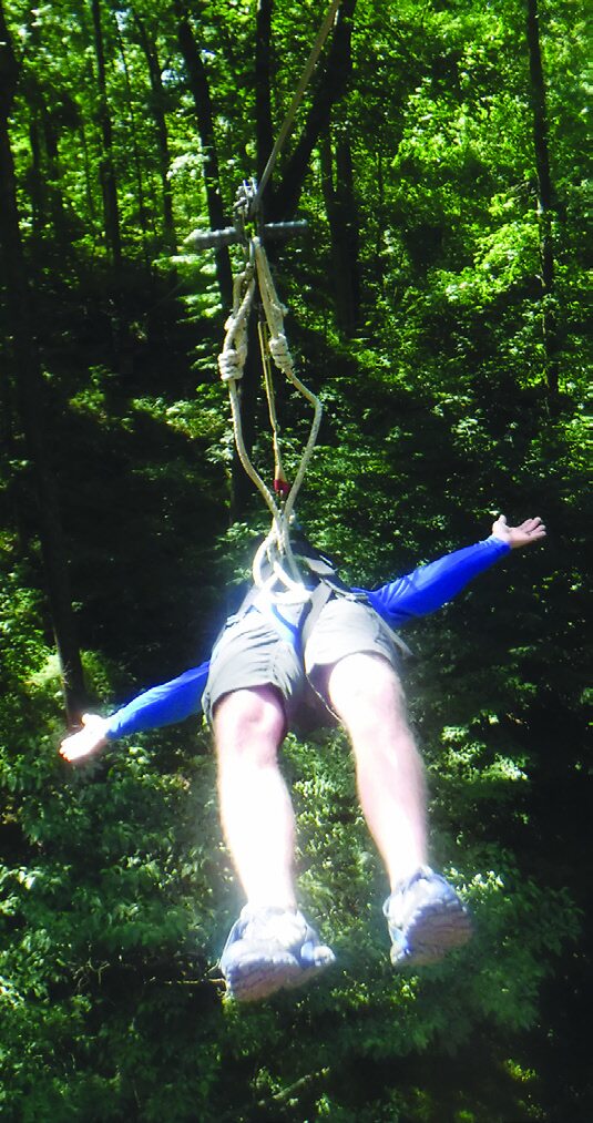 Camp guest Kristopher Tate, 43, of Zionsville, recently rented a cabin at the camp with his wife and two kids. The whole family thoroughly enjoyed its zip tour. Even Tate, though he said he is afraid of heights. “It was a blast,” he said.