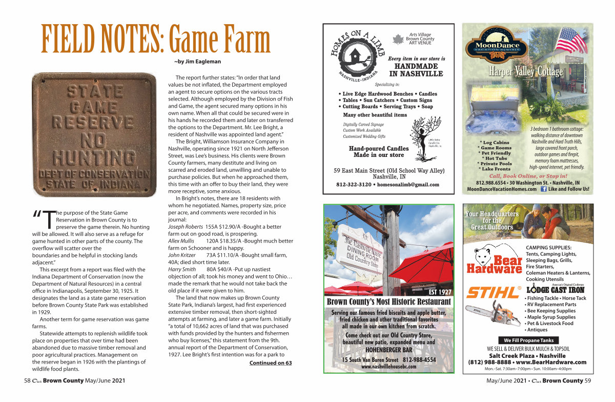 WE SELL & DELIVER BULK MULCH & TOPSOIL Salt Creek Plaza • Nashville( 812) 988-8888 • www. BearHardware. com