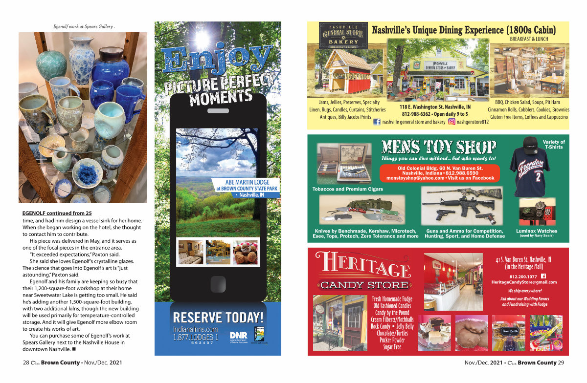 You can purchase some of Egenolf’ s work at Spears Gallery next to the Nashville House in downtown Nashville. •