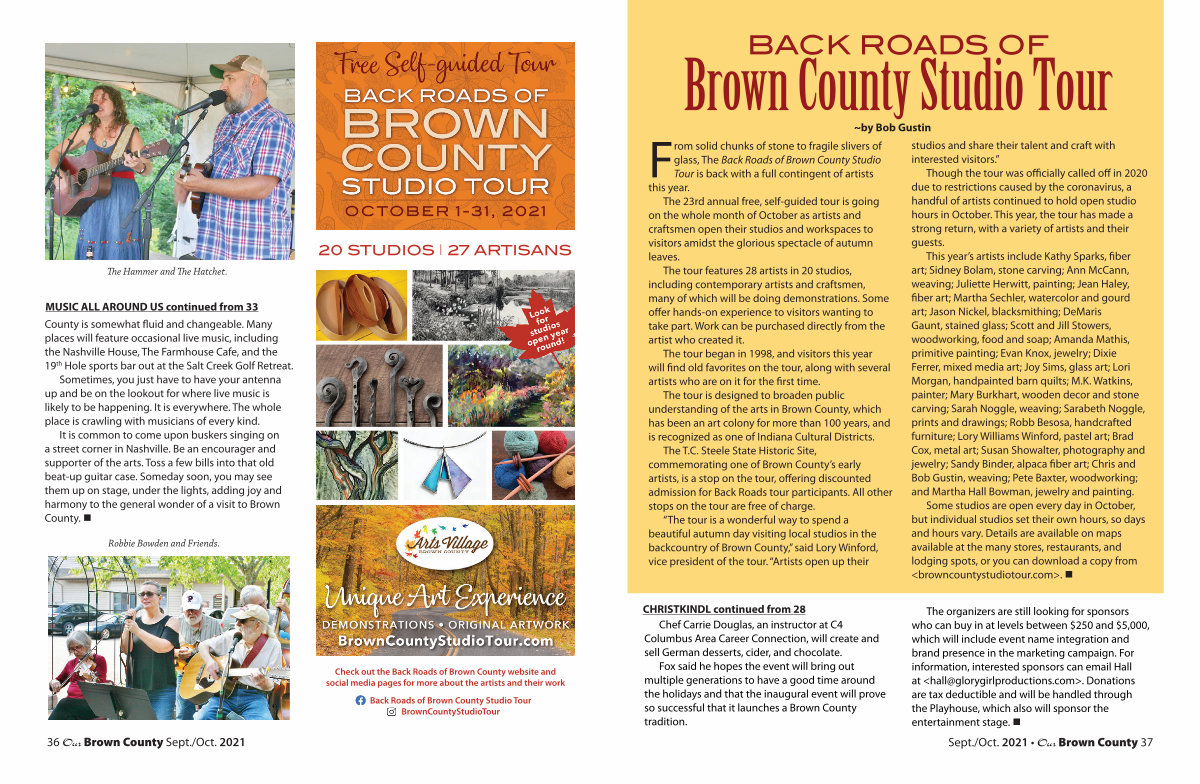 Check out the Back Roads of Brown County website and social media pages for more about the artists and their work