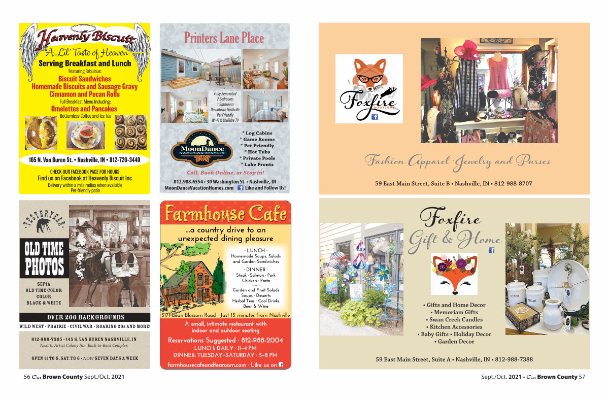 812.988.6554 • 30 Washington St. • Nashville, IN MoonDanceVacationHomes. com Like and Follow Us!