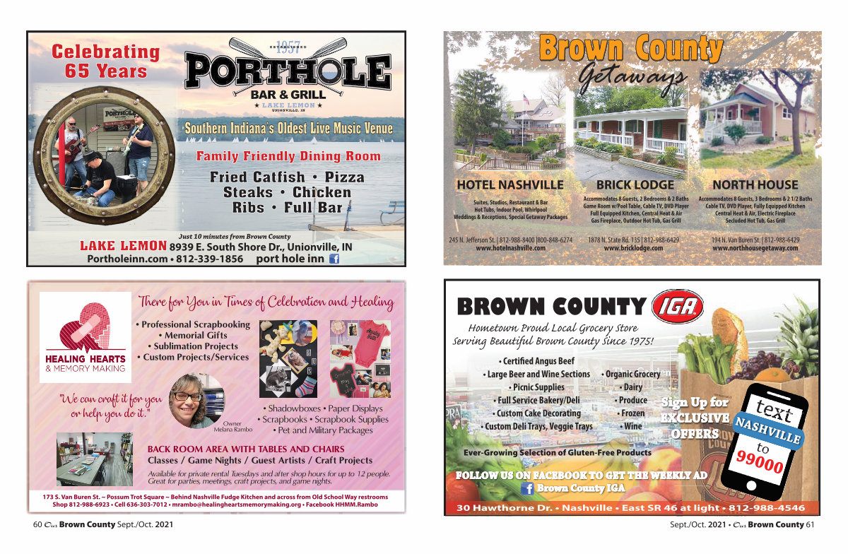 30 Hawthorne Dr. • Nashville • East SR 46 at light • 812-988-4546 Sept./ Oct. 2021 • Our Brown County 61