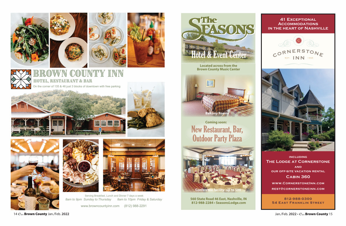 560 State Road 46 East, Nashville, IN 812-988-2284 • SeasonsLodge. com rest @ cornerstoneinn. com