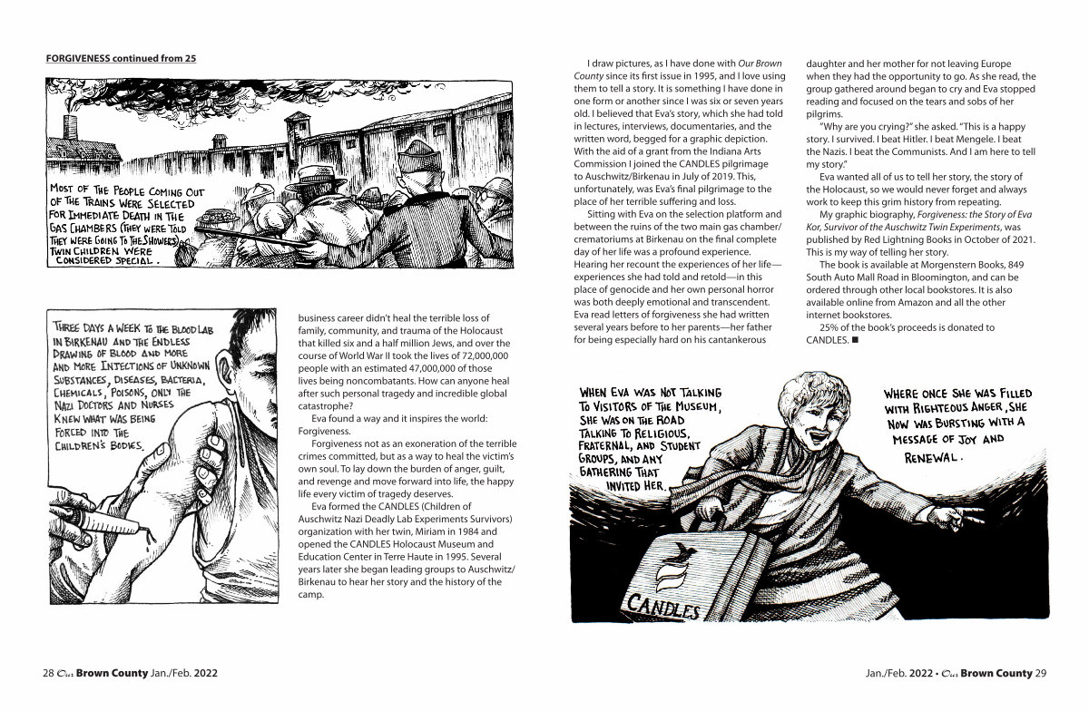 Eva formed the CANDLES( Children of Auschwitz Nazi Deadly Lab Experiments Survivors) organization with her twin, Miriam in 1984 and opened the CANDLES Holocaust Museum and Education Center in Terre Haute in 1995. Several years later she began leading groups to Auschwitz / Birkenau to hear her story and the history of the camp.