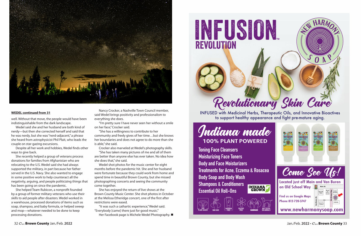 Wedel shot photos for the music center for eight months before the pandemic hit. She and her husband were fortunate because they could work from home and spend time in beautiful Brown County, but she missed photographing concerts and seeing the community come together.