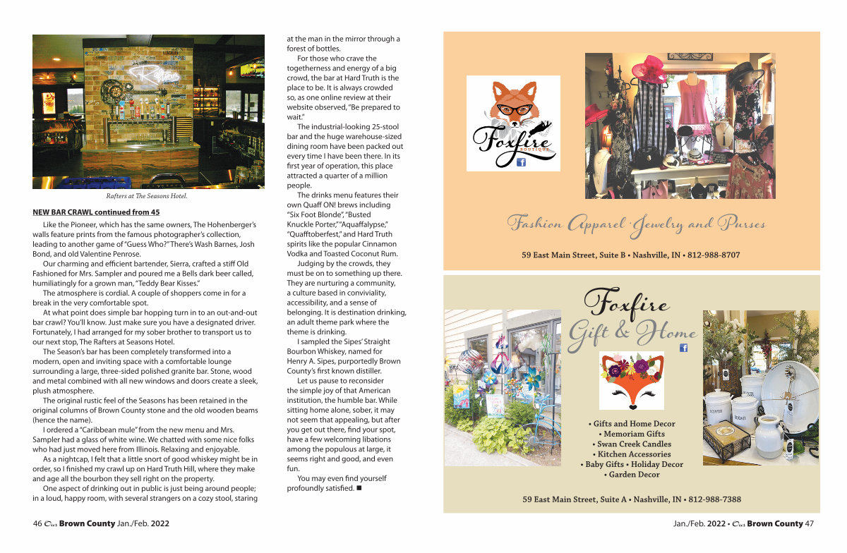 I sampled the Sipes’ Straight Bourbon Whiskey, named for Henry A. Sipes, purportedly Brown County’ s first known distiller.