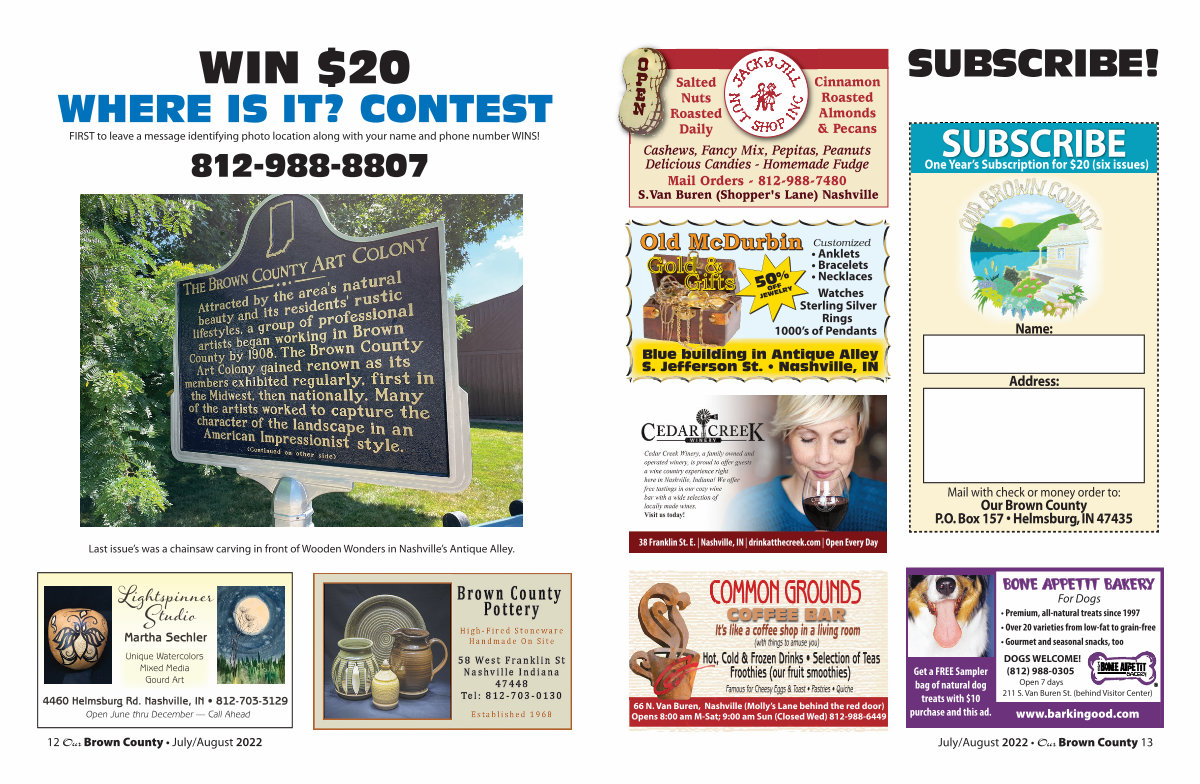 Mail with check or money order to: Our Brown County P. O. Box 157 • Helmsburg, IN 47435