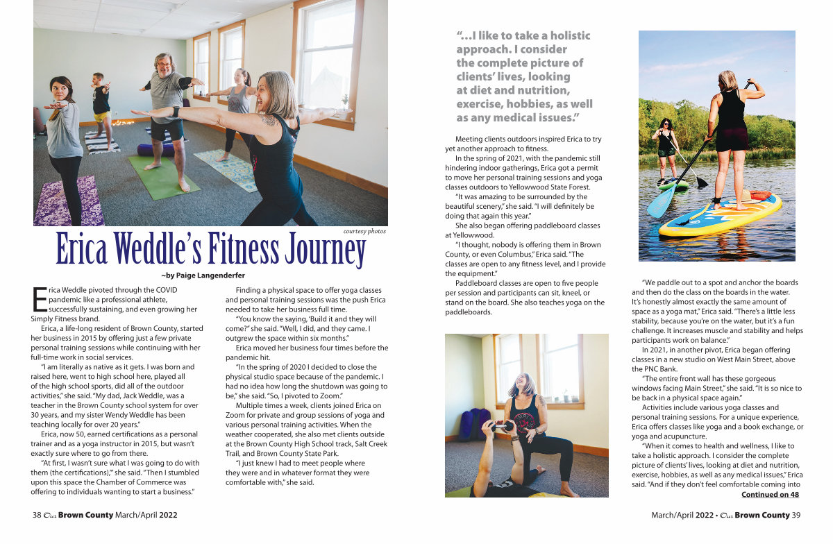 “I thought, nobody is offering them in Brown County, or even Columbus,” Erica said. “The classes are open to any fitness level, and I provide the equipment.”