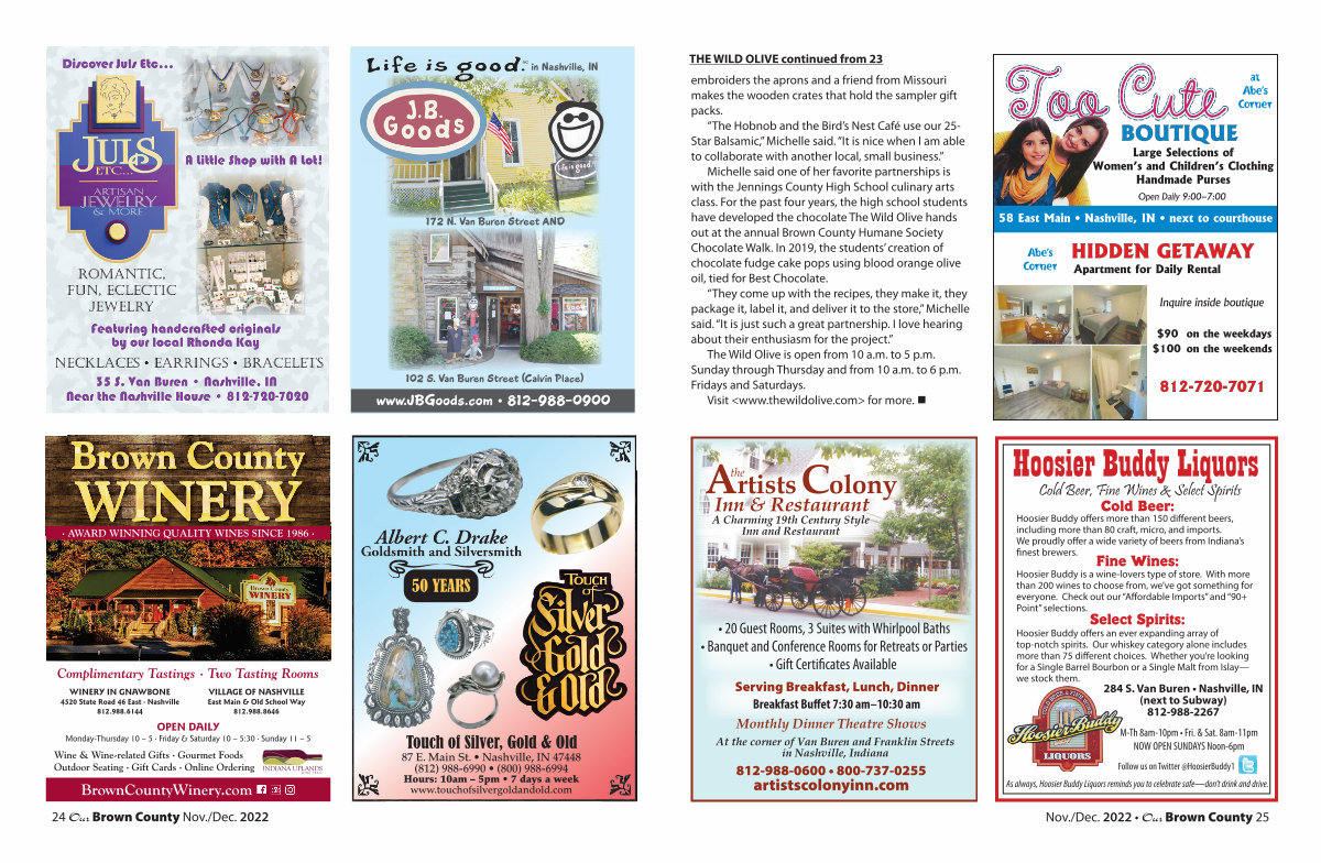 812-988-0600 • 800-737-0255 artistscolonyinn. com
