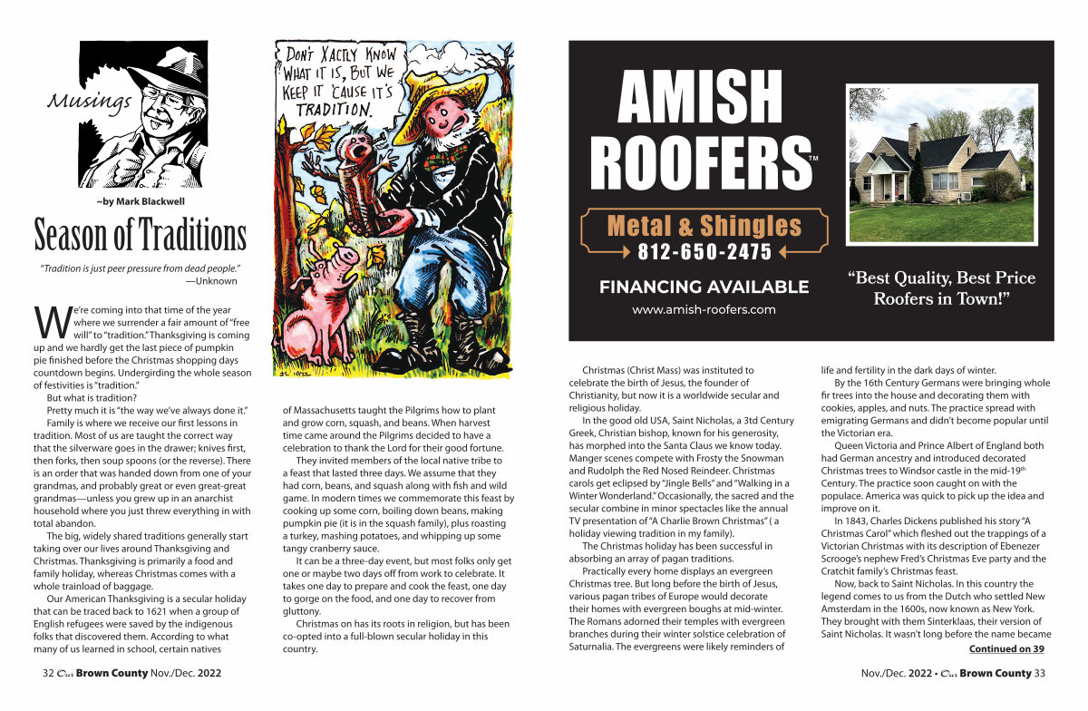 We’ re coming into that time of the year where we surrender a fair amount of“ free will” to“ tradition.” Thanksgiving is coming up and we hardly get the last piece of pumpkin pie finished before the Christmas shopping days countdown begins. Undergirding the whole season of festivities is“ tradition.” But what is tradition? Pretty much it is“ the way we’ ve always done it.” Family is where we receive our first lessons in tradition. Most of us are taught the correct way that the silverware goes in the drawer; knives first, then forks, then soup spoons( or the reverse). There is an order that was handed down from one of your grandmas, and probably great or even great-great grandmas— unless you grew up in an anarchist household where you just threw everything in with total abandon.