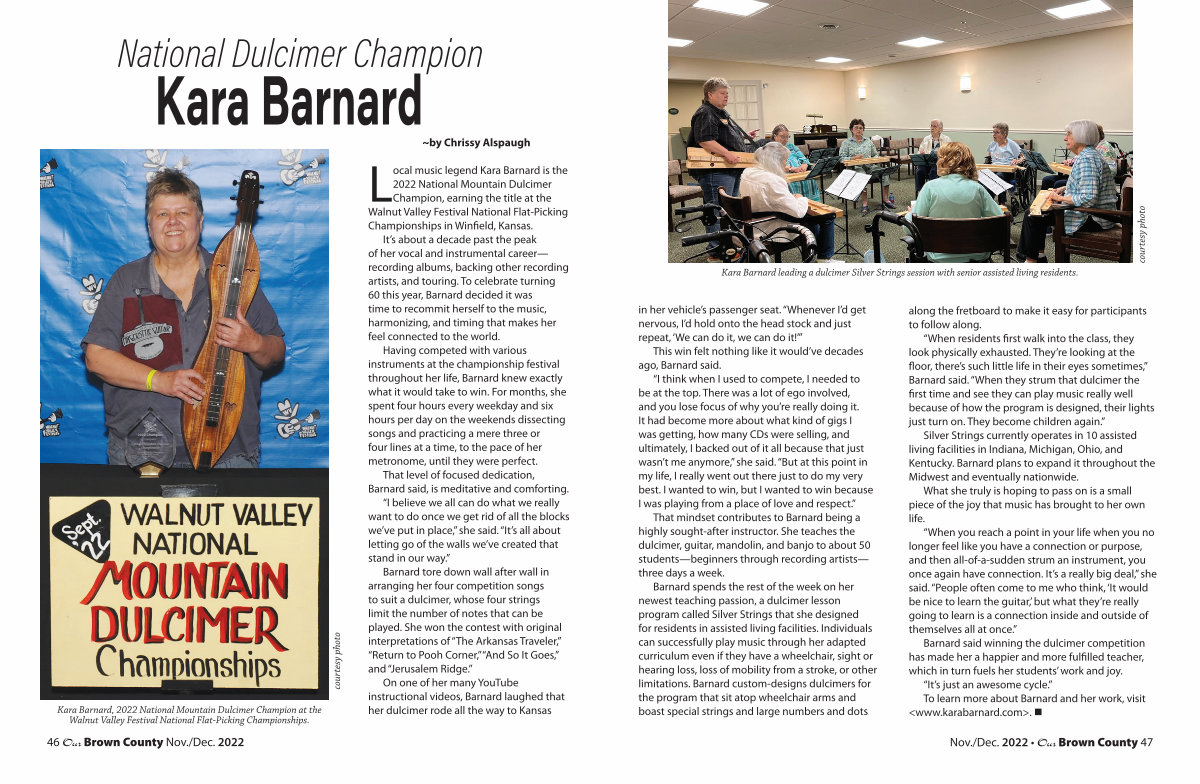 That mindset contributes to Barnard being a highly sought-after instructor. She teaches the dulcimer, guitar, mandolin, and banjo to about 50 students— beginners through recording artists— three days a week.