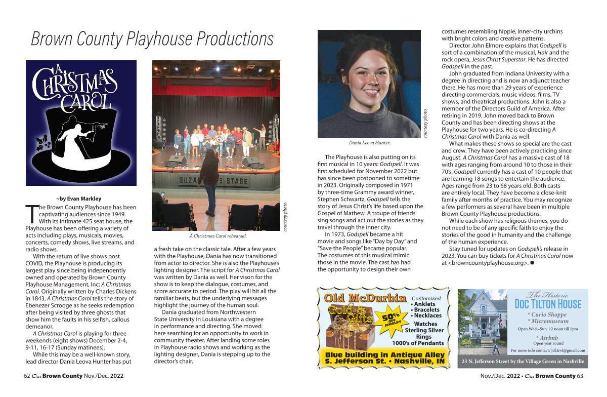 Stay tuned for updates on Godspell’ s release in 2023. You can buy tickets for A Christmas Carol now at < browncountyplayhouse. org >. •