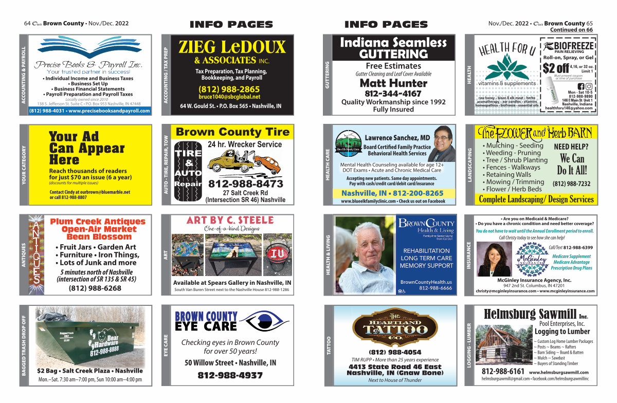 64 Our Brown County • Nov./ Dec. 2022 INFO PAGES