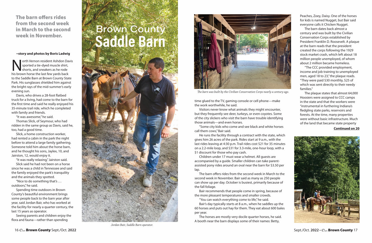 Spending time outdoors in Brown County’s beautiful environment brings some people back to the barn year after year, said Jordan Bair, who has worked at the facility for nearly a quarter century, the last 15 years as operator.