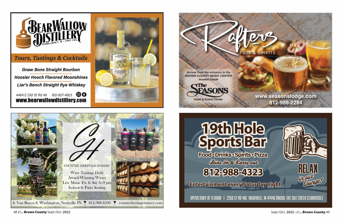 Across from the entrance to the BROWN COUNTY MUSIC CENTER located inside