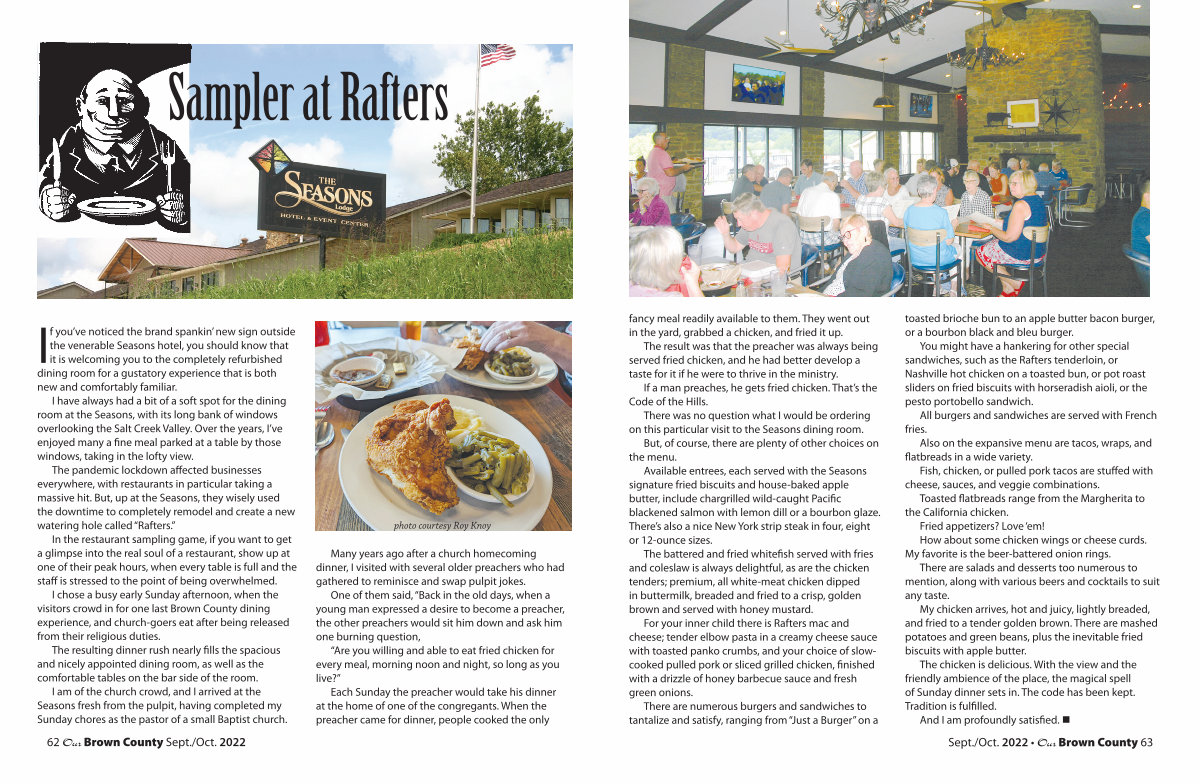 You might have a hankering for other special sandwiches, such as the Rafters tenderloin, or Nashville hot chicken on a toasted bun, or pot roast sliders on fried biscuits with horseradish aioli, or the pesto portobello sandwich.