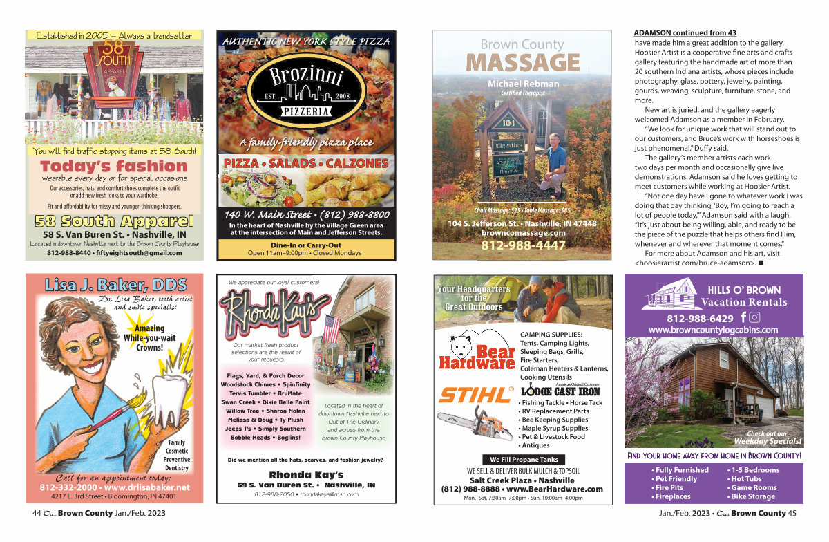 58 South Apparel 58 S. Van Buren St. • Nashville, IN Located in downtown Nashville next to the Brown County Playhouse