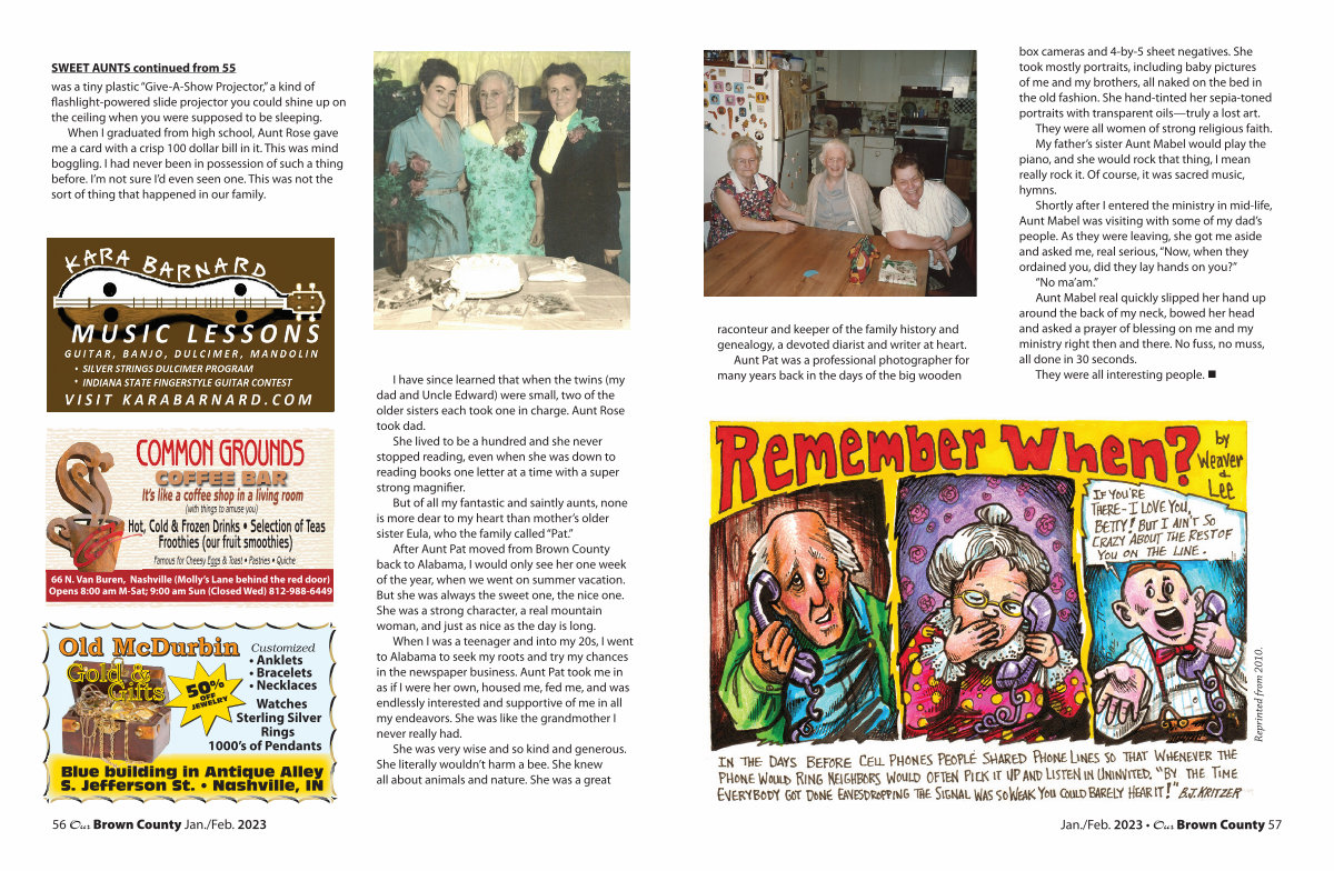 After Aunt Pat moved from Brown County back to Alabama, I would only see her one week of the year, when we went on summer vacation. But she was always the sweet one, the nice one. She was a strong character, a real mountain woman, and just as nice as the day is long.