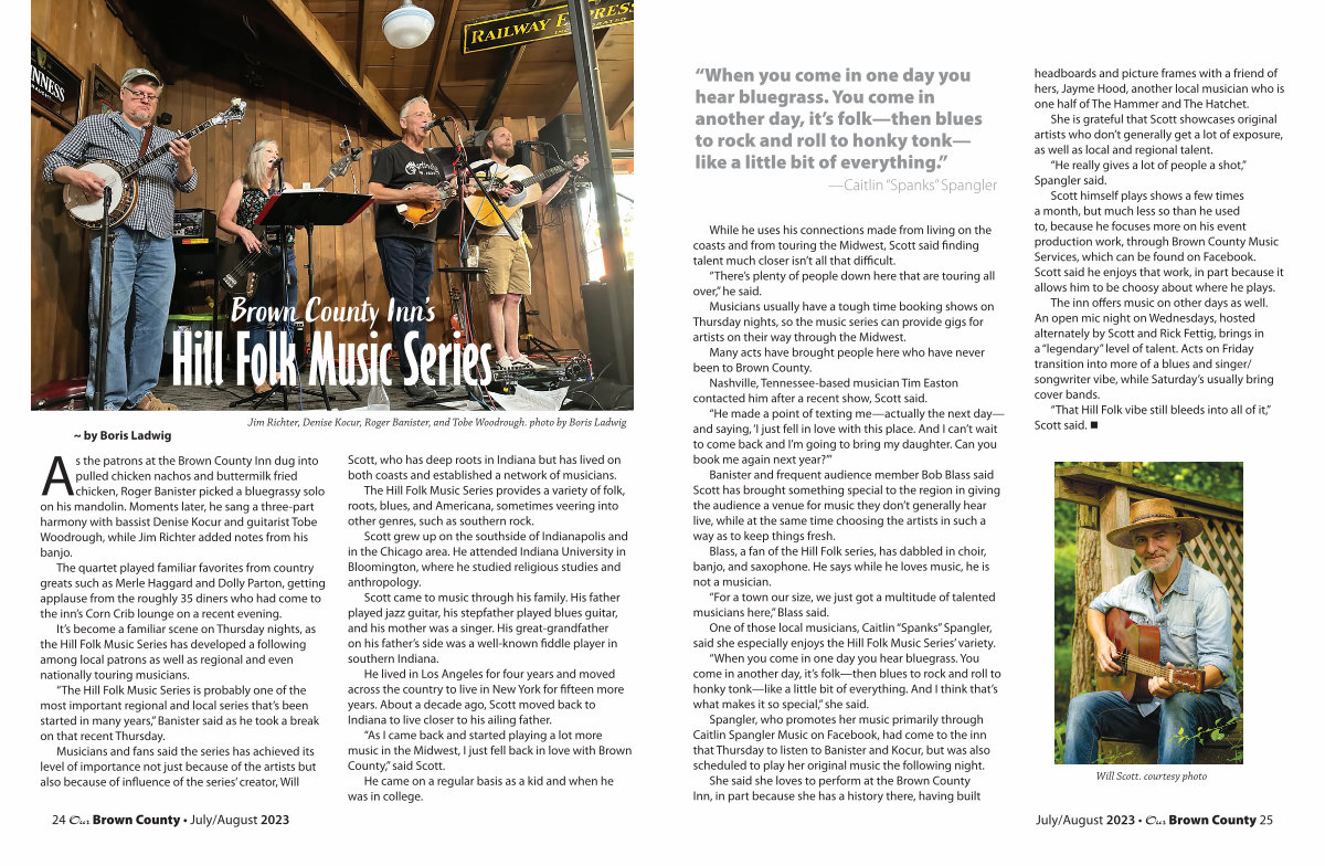 Scott himself plays shows a few times a month, but much less so than he used to, because he focuses more on his event production work, through Brown County Music Services, which can be found on Facebook. Scott said he enjoys that work, in part because it allows him to be choosy about where he plays.