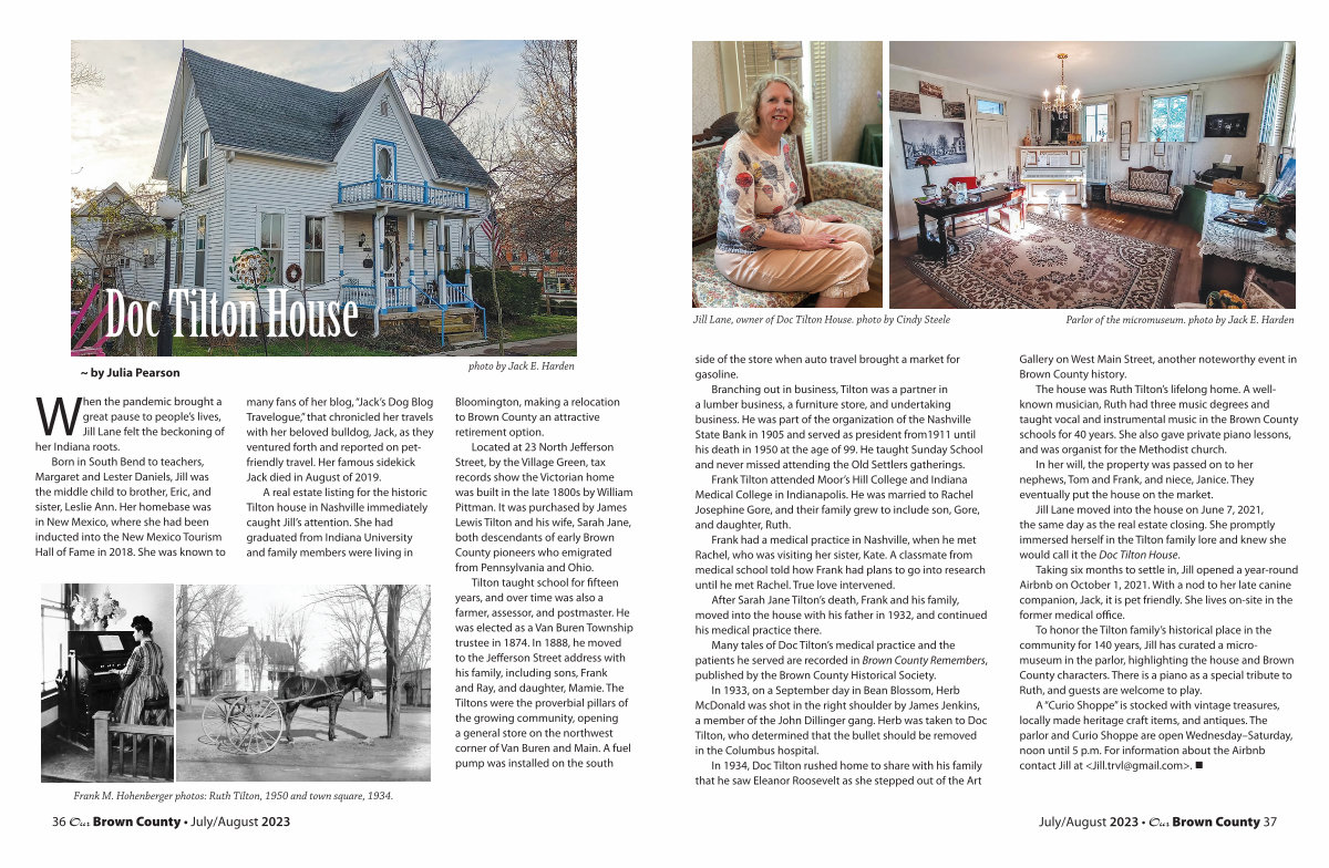 Many tales of Doc Tilton’ s medical practice and the patients he served are recorded in Brown County Remembers, published by the Brown County Historical Society.