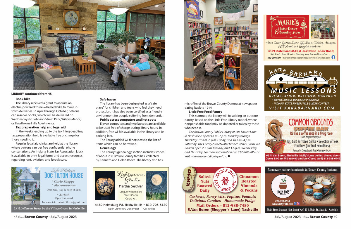 The library added wi-fi hotspots to the list of items which can be borrowed. Genealogy The library’ s genealogy section includes stories of about 280 Brown County families, collected by Kenneth and Helen Reeve. The library also has