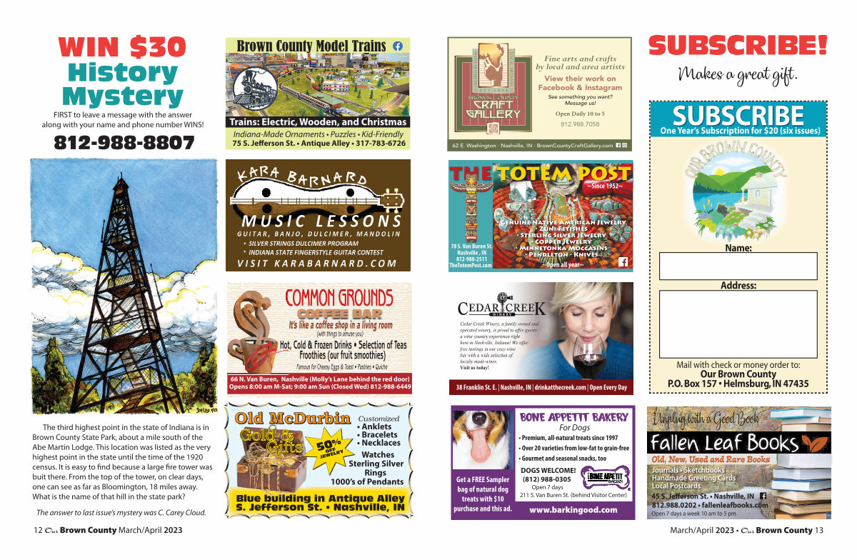 78 S. Van Buren St. Nashville, IN 812-988-2511 TheTotemPost. com