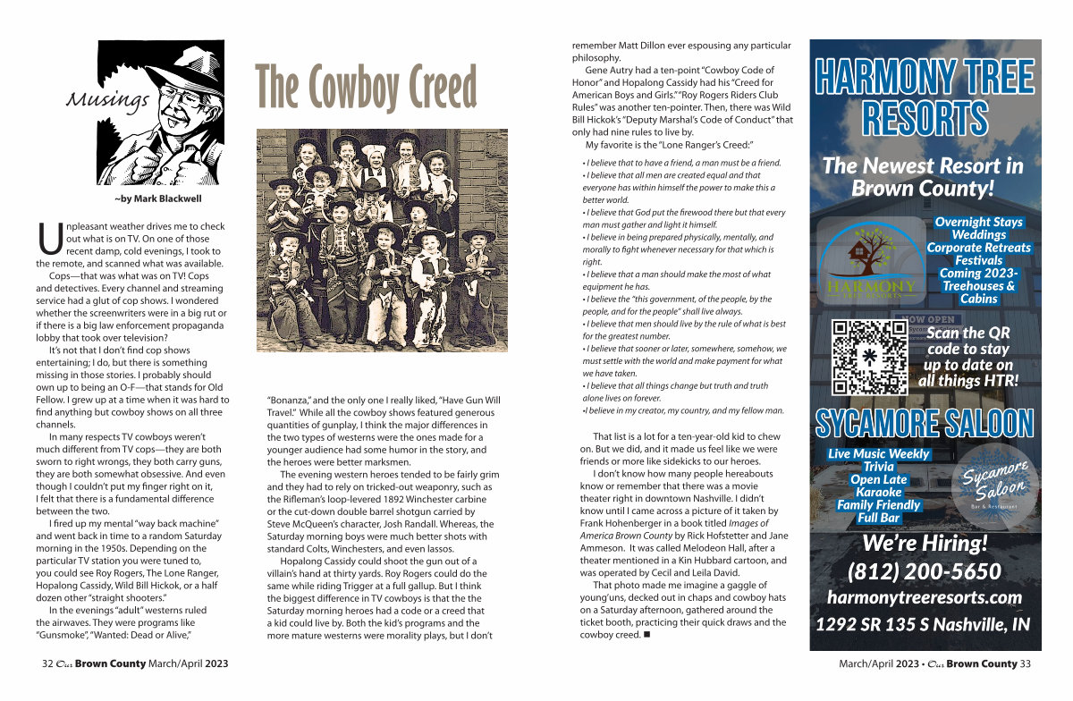 Gene Autry had a ten-point“ Cowboy Code of Honor” and Hopalong Cassidy had his“ Creed for American Boys and Girls.”“ Roy Rogers Riders Club Rules” was another ten-pointer. Then, there was Wild Bill Hickok’ s“ Deputy Marshal’ s Code of Conduct” that only had nine rules to live by. My favorite is the“ Lone Ranger’ s Creed:”