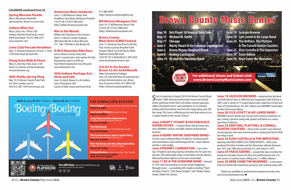 June 1-3, Bill Monroe’ s Music Park Headliners Sam Bush, Henhouse Prowlers 5163 N. SR 135 812-988-6422 https:// billmonroemusicpark. com