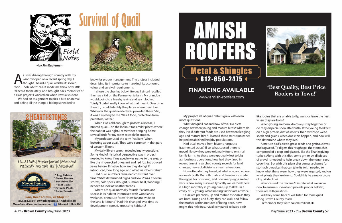 As I was driving through country with my window open on a recent spring day, I thought I heard a quail whistle its iconic“ bob … bob white” call. It made me think how little I’ d heard them lately, and brought back memories of a class project I worked on when I was a student.