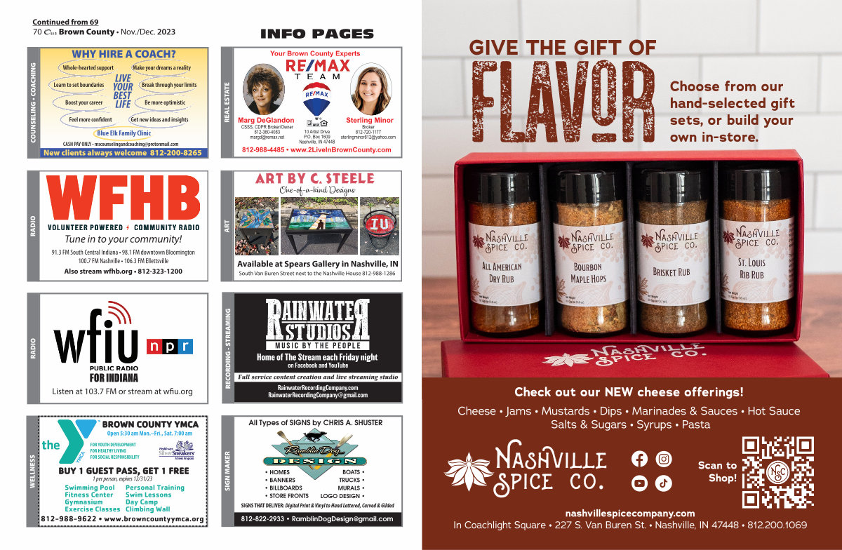 Scan to Shop! nashvillespicecompany. com In Coachlight Square • 227 S. Van Buren St. • Nashville, IN 47448 • 812.200.1069
