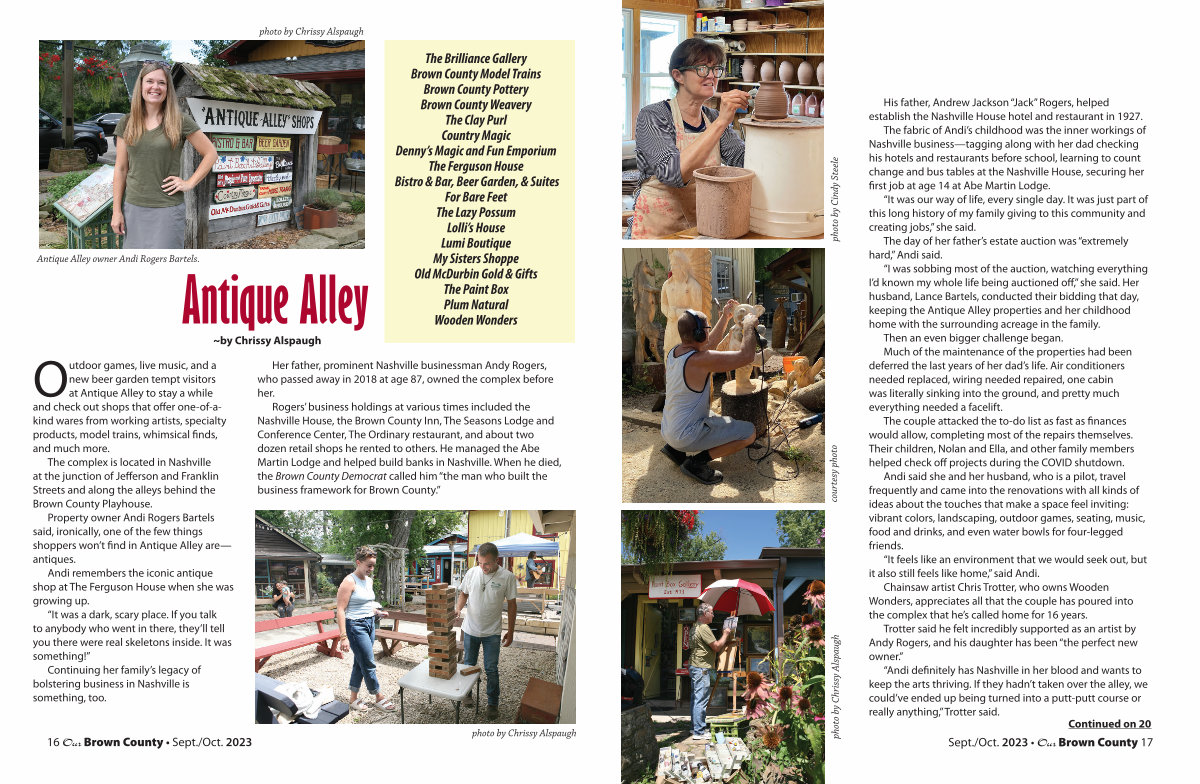 “I still frequently get asked where the antique shops are,” said David Hoggatt, owner of the alley’s Brown County Model Trains. “There aren’t antiques here, but folks really enjoy what they do find.”