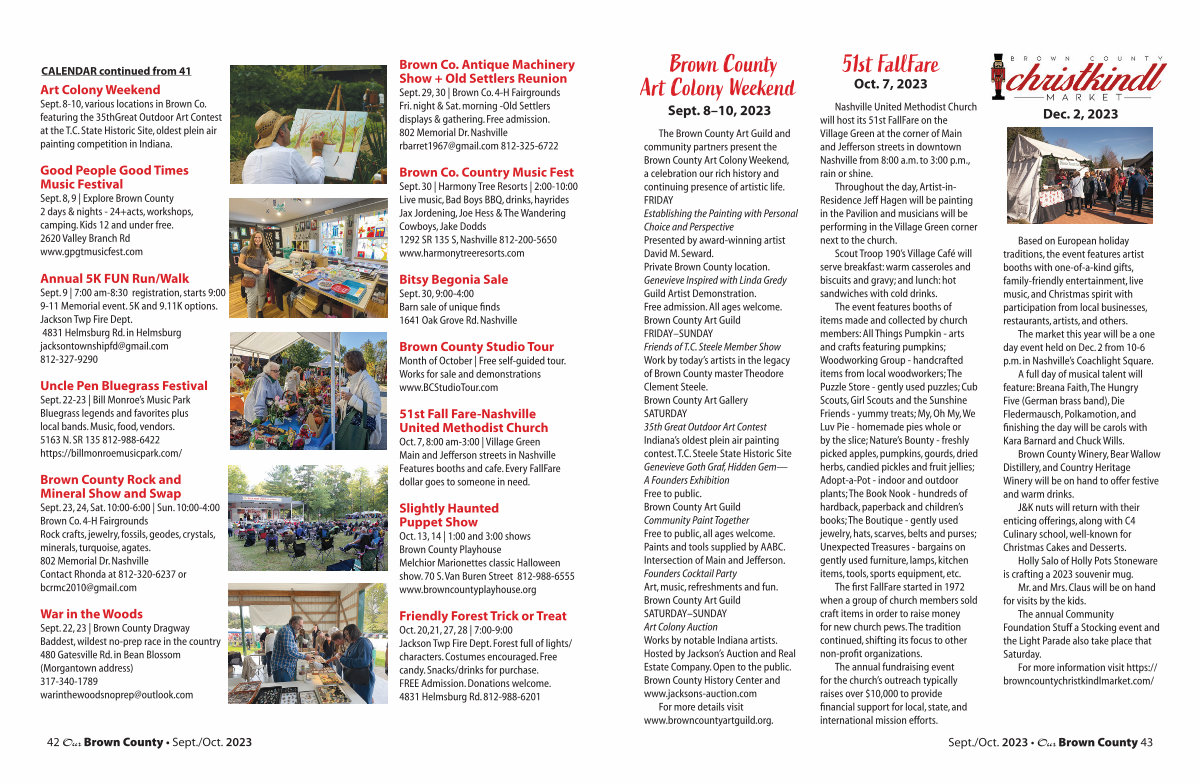 Sept. 8, 9 | Explore Brown County 2 days & nights- 24 + acts, workshops, camping. Kids 12 and under free. 2620 Valley Branch Rd www. gpgtmusicfest. com