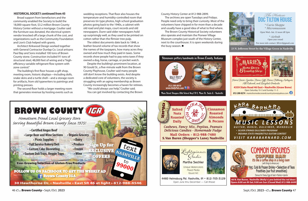 30 Hawthorne Dr. • Nashville • East SR 46 at light • 812-988-4546 46 Our Brown County • Sept./ Oct. 2023