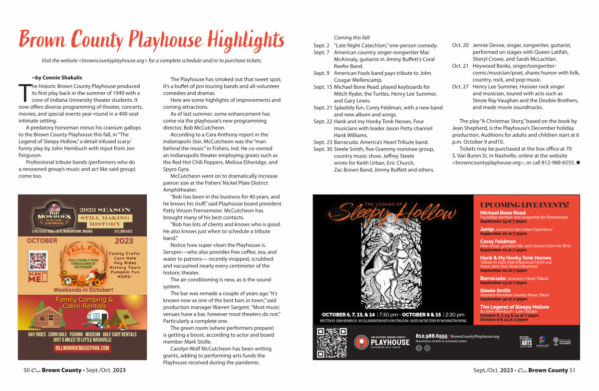 Visit the website < browncountyplayhouse. org > for a complete schedule and / or to purchase tickets.