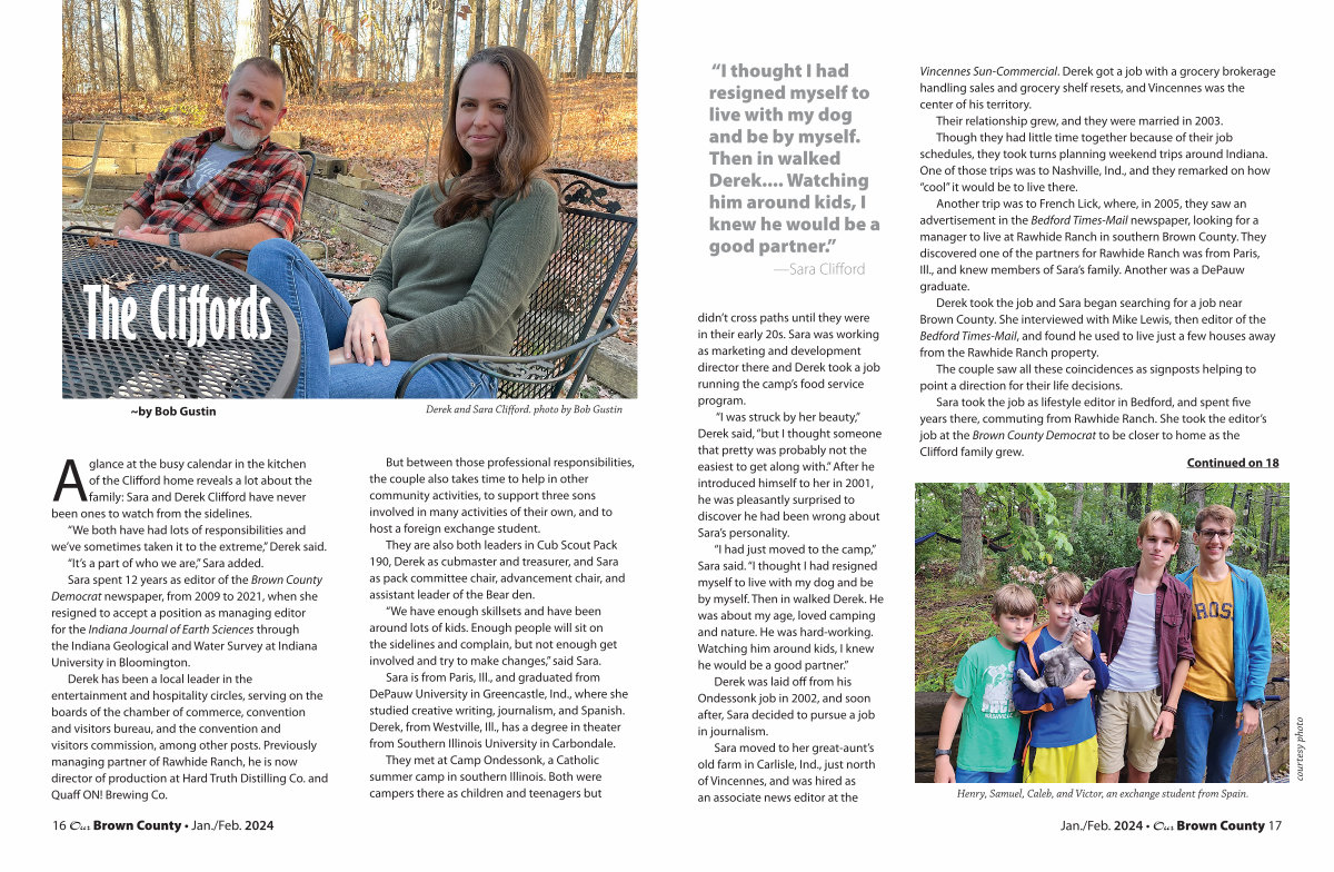 Sara took the job as lifestyle editor in Bedford, and spent five years there, commuting from Rawhide Ranch. She took the editor’ s job at the Brown County Democrat to be closer to home as the Clifford family grew.