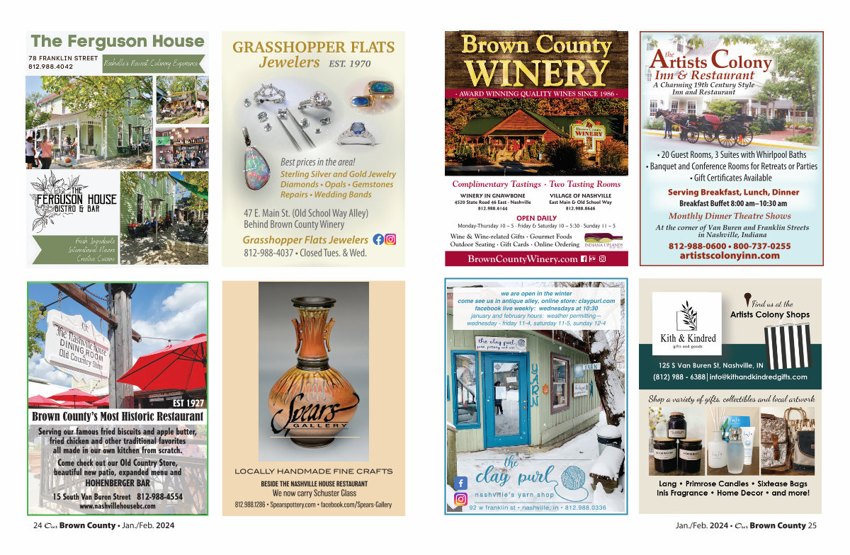 Jan./ Feb. 2024 • Our Brown County 25 BrownCountyWinery. com Complimentary Tastings · Two Tasting Rooms WINERY IN GNAWBONE 4520 State Road 46 East · Nashville 812.988.6144 VILLAGE OF NASHVILLE East Main & Old School Way 812.988.8646 OPEN DAILY Monday-Thursday 10 – 5 · Friday & Saturday 10 – 5:30 · Sunday 11 – 5 Wine & Wine-related Gifts · Gourmet Foods Outdoor Seating · Gift Cards · Online Ordering Brown County Brown County Brown Cou Brown County Brown County Brown County Brown County Brown County Brown County Brown County Brown County Brown County Brown County Brown County Brown County Brown County Brown County Brown County Brown County Brown County Brown County Brown County Brown County Brown County Brown County Brown County Brown County Brown County Brown County Brown County Brown County Brown County Brown County Brown County Brown County Brown County Brown County Brown County Brown County Brown County Brown County Brown County Brown County Brown County Brown County Brown County Brown County Brown County Brown County Brown County Brown County Brown County Brown County Brown County Brown County Brown County Brown County Brown County Brown County Brown County Brown County Brown County Brown County Brown County Brown County Brown County Brown County Brown County Brown County Brown County Brown County Brown County Brown County Brown County Brown County Brown County Brown County Brown County Brown County Brown County Brown County Brown County Brown County Brown County Brown County Brown County Brown County Brown County Brown County Brown County Brown County Brown County Brown County Brown County Brown County Brown County Brown County Brown County Brown County Brown County Brown County Brown County Brown County Brown County Brown County Brown County Brown County Brown County Brown County Brown County Brown County Brown County Brown County Brown County Brown County Brown County Brown County Brown County Brown County Brown County Brown County Brown County Brown County Brown County Brown County Brown County Brown County Brown County Brown County Brown County Brown County Brown County Brown County Brown County Brown County Brown County Brown County Brown County Brown County Brown County Brown County Brown County Brown County Brown County Brown County Brown County Brown County Brown County Brown County Brown County Brown County Brown County Brown County Brown County Brown County Brown County Brown County Brown County Brown County Brown County Brown County Brown County Brown County Brown County Brown County Brown County Brown County Brown County Brown County Brown County Brown County Brown County Brown County Brown County Brown County Brown County Brown County Brown County Brown County Brown County Brown County Brown County Brown County Brown County Brown County Brown County Brown County Brown County Brown County Brown County Brown County Brown County Brown County Brown County Brown County Brown County Brown County Brown County Brown County Brown County Brown County Brown County Brown County Brown County Brown County Brown County Brown County Brown County Brown County Brown County Brown County Brown County Brown County Brown County Brown County Brown County Brown County Brown County Brown County Brown County Brown County Brown County Brown County Brown County Brown County Brown County Brown County Brown County Brown County Brown County Brown County Brown County Brown County Brown County Brown County Brown County Brown County Brown County Brown County Brown County Brown County Brown County Brown County Brown County Brown County Brown County Brown County Brown County Brown County Brown County Brown County Brown County Brown County Brown County Brown County Brown County Brown County Brown County Brown County Brown County Brown County Brown County Brown County Brown County Brown County Brown County Brown County Brown County Brown County Brown County Brown County Brown County Brown County Brown County Brown County Brown County Brown County Brown County Brown County Brown County Brown County Brown County Brown County Brown County Brown County Brown County Brown County Brown County Brown County Brown County Brown County Brown County Brown County Brown County Brown County Brown County Brown County Brown County Brown County Brown County Brown County Brown County Brown County Brown County Brown County Brown County Brown County Brown County Brown County Brown County Brown County Brown County Brown County Brown County Brown County Brown County Brown County Brown County Brown County Brown County Brown County Brown County Brown County Brown County Brown County Brown County Brown County Brown County Brown County Brown County Brown County Brown County Brown County Brown County Brown County Brown County Brown County Brown County Brown County Brown County Brown County Brown County Brown County Brown County Brown County Brown County Brown County Brown County Brown County Brown County Brown County Brown County Brown County Brown County Brown County Brown County Brown County Brown County Brown County Brown County Brown County Brown County Brown County Brown County Brown County Brown County Brown County Brown County Brown County Brown County Brown County Brown County Brown County Brown County Brown County Brown County Brown County Brown County Brown County Brown County Brown County Brown County Brown County Brown County Brown County Brown County Brown County Brown County Brown County Brown County Brown County Brown County Brown County Brown County Brown County Brown County Brown County Brown County Brown County Brown County Brown County Brown County Brown County Brown County Brown County Brown County Brown County Brown County Brown County Brown County Brown County Brown County Brown County Brown County Brown County Brown County Brown County Brown County Brown County Brown County Brown County Brown County Brown County Brown County Brown County Brown County Brown County Brown County Brown County Brown Cou