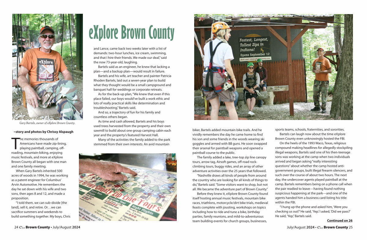 “ Nashville draws all kinds of people from around the country who are looking for all kinds of things to do,” Bartels said.“ Some visitors want to shop, but not all. We became the adventure part of Brown County.”