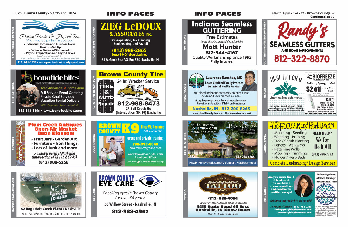 • Payroll Preparation and Payroll Taxes Locally owned since 2010 138 S. Jefferson St. Suite C • P. O. Box 953 Nashville, IN 47448