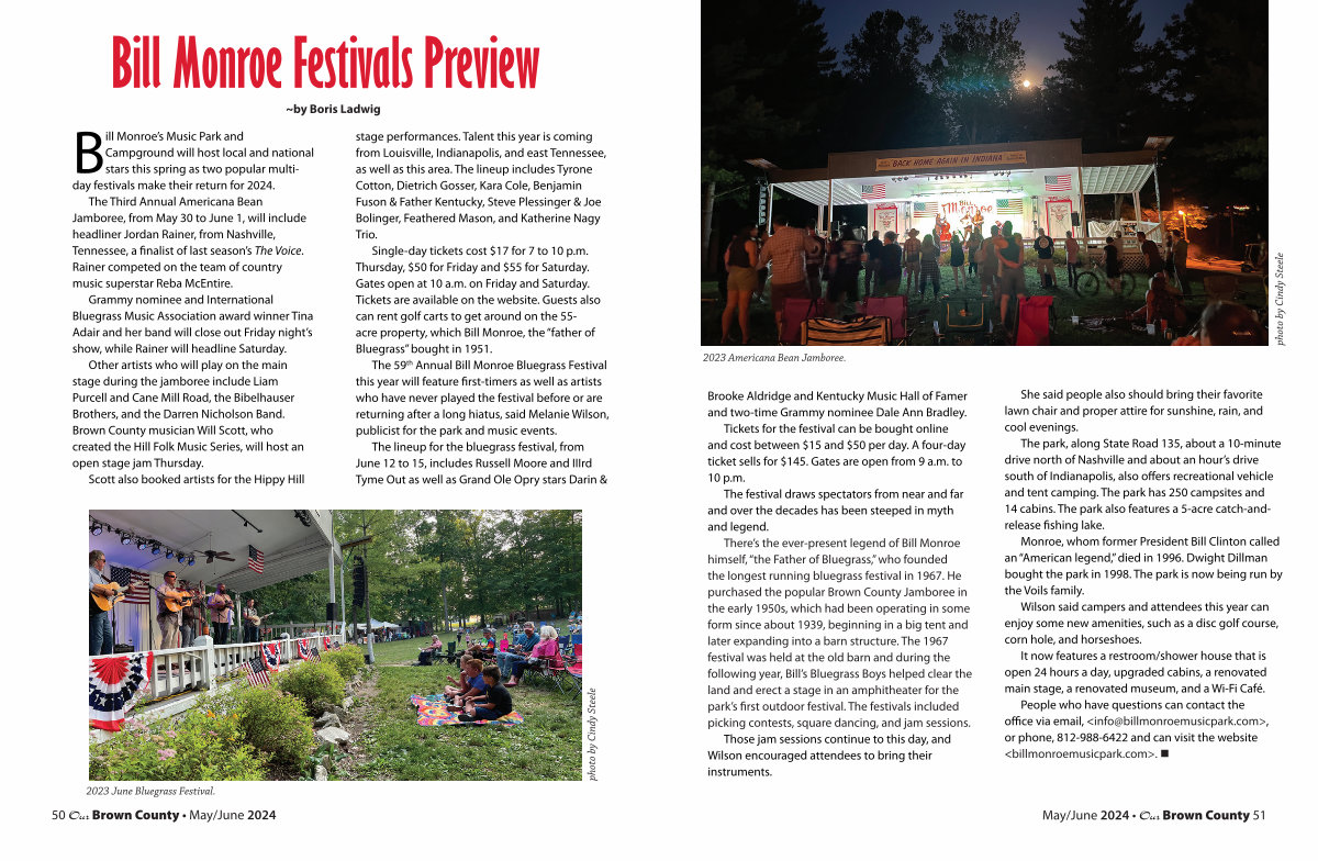 Bill Monroe’ s Music Park and Campground will host local and national stars this spring as two popular multiday festivals make their return for 2024.