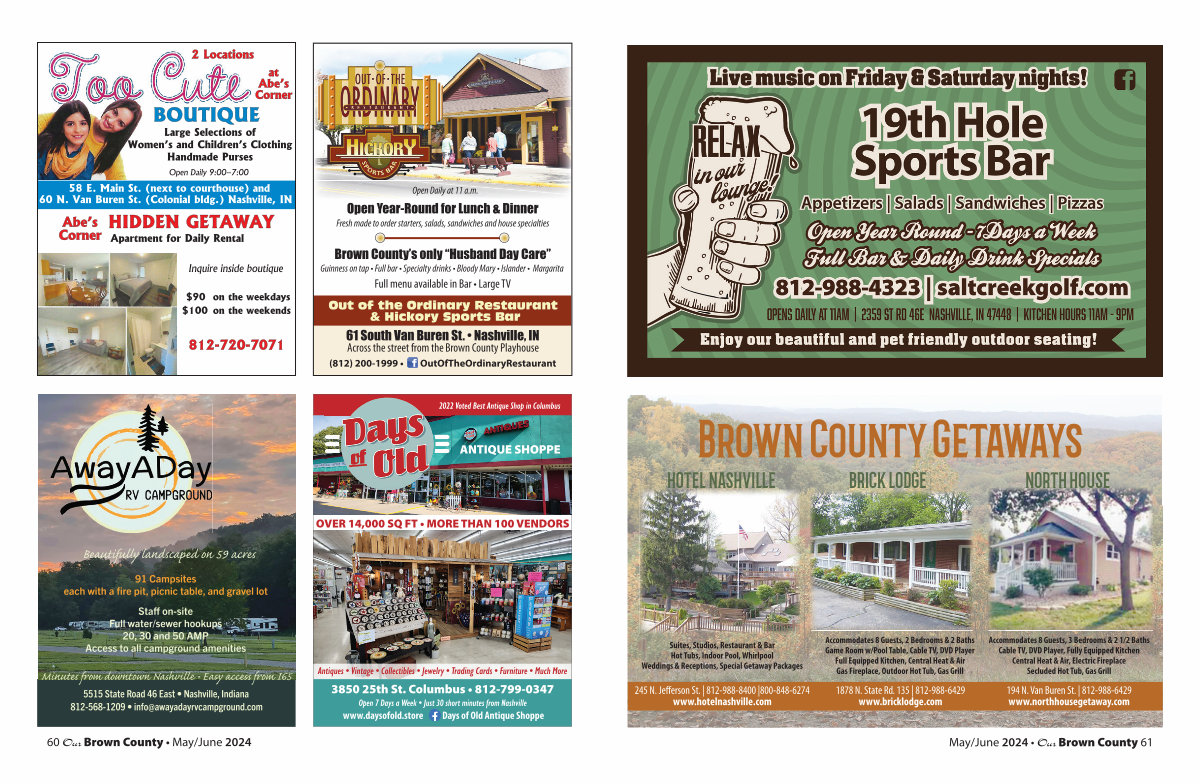 61 South Van Buren St. • Nashville, IN Across the street from the Brown County Playhouse