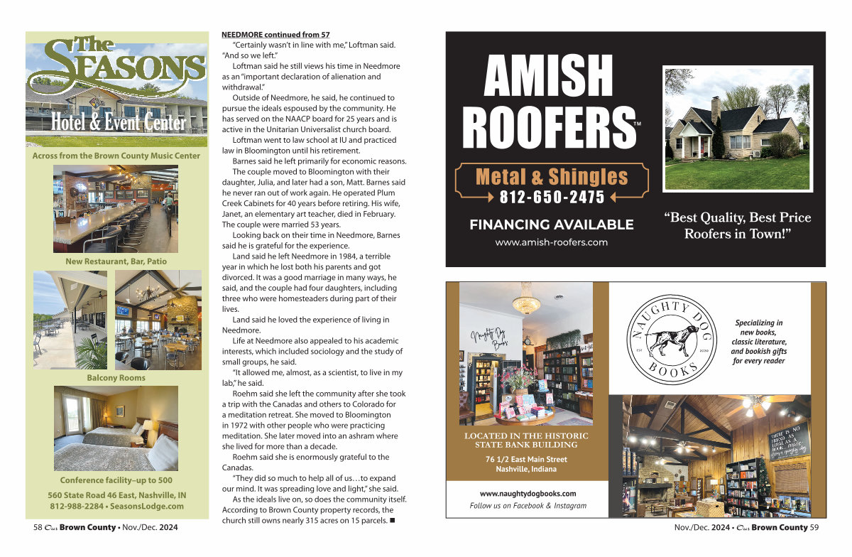 As the ideals live on, so does the community itself. According to Brown County property records, the church still owns nearly 315 acres on 15 parcels. •