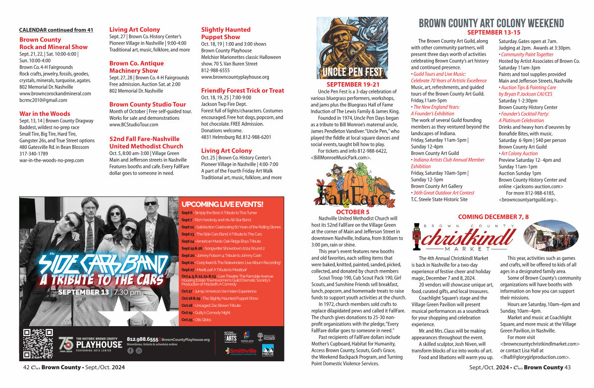 Sept. 27, 28 | Brown Co. 4-H Fairgrounds Free admission. Auction Sat. at 2:00 802 Memorial Dr. Nashville