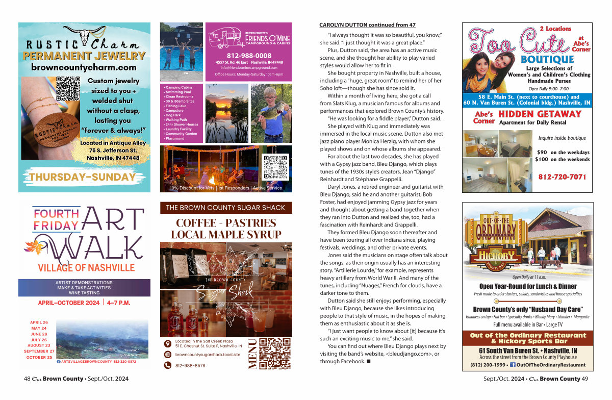 61 South Van Buren St. • Nashville, IN Across the street from the Brown County Playhouse